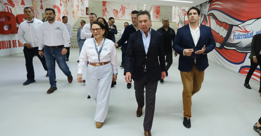Calleja Alor recorrió el Estadio Guadalajara en compañía del Gobernador de Jalisco, Pablo Lemus, para constatar las acciones de mantenimiento y reforzamiento implementadas para garantizar la continuidad y confiabilidad del suministro eléctrico durante el desarrollo del Mundial 2026.